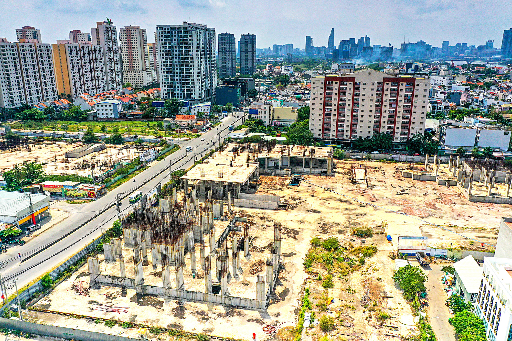 Nhiều dự án đầu tư bất động sản ở TP Thủ Đức (TP.HCM) gặp khó khăn phải tạm dừng thi công- Ảnh: QUANG ĐỊNH